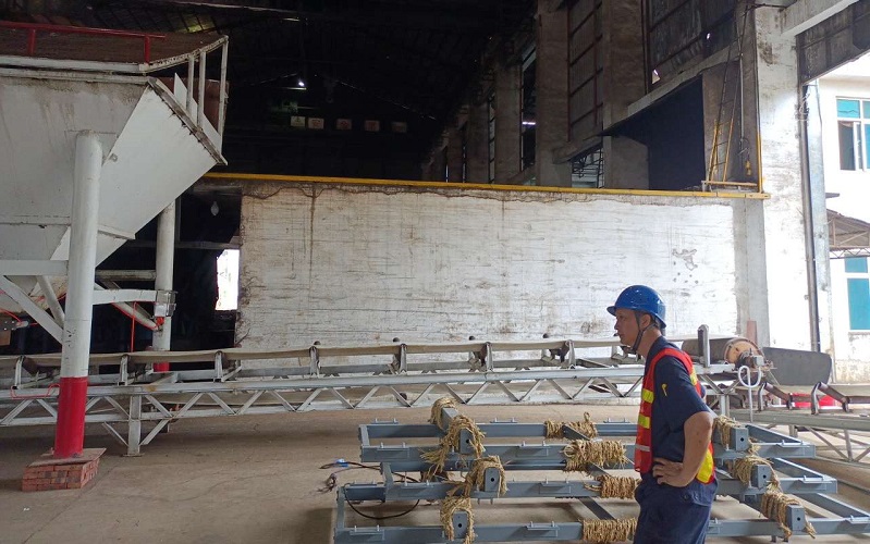 現(xiàn)場皮帶輸送機(jī)的下皮帶距離托輥支架距離過短,無法滿足皮帶秤安裝空間要求,昊諾售后調(diào)低下皮帶,使得輸送機(jī)有足夠空間安裝秤架、傳感器等。